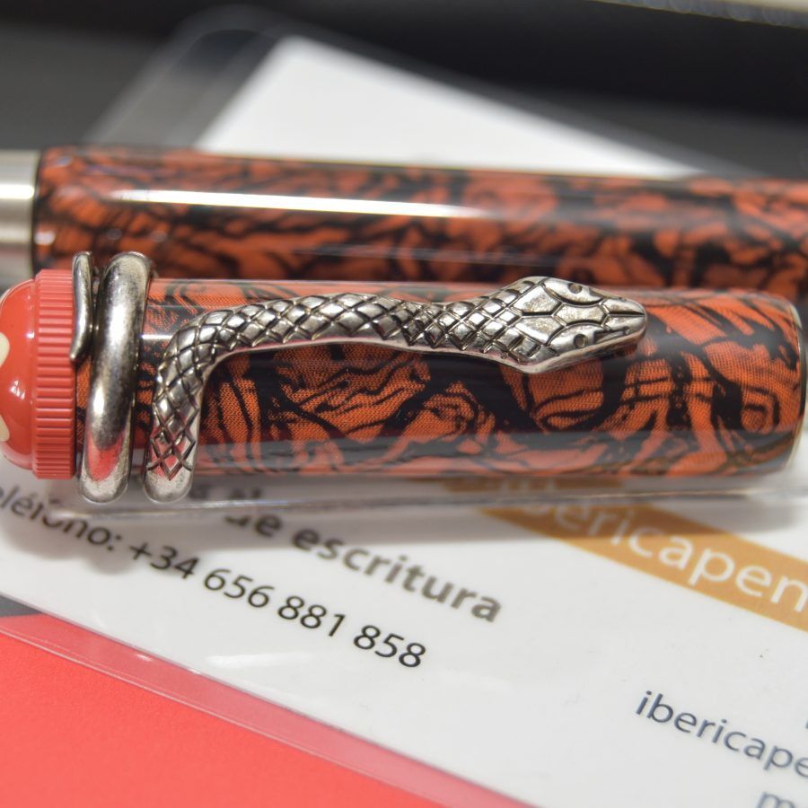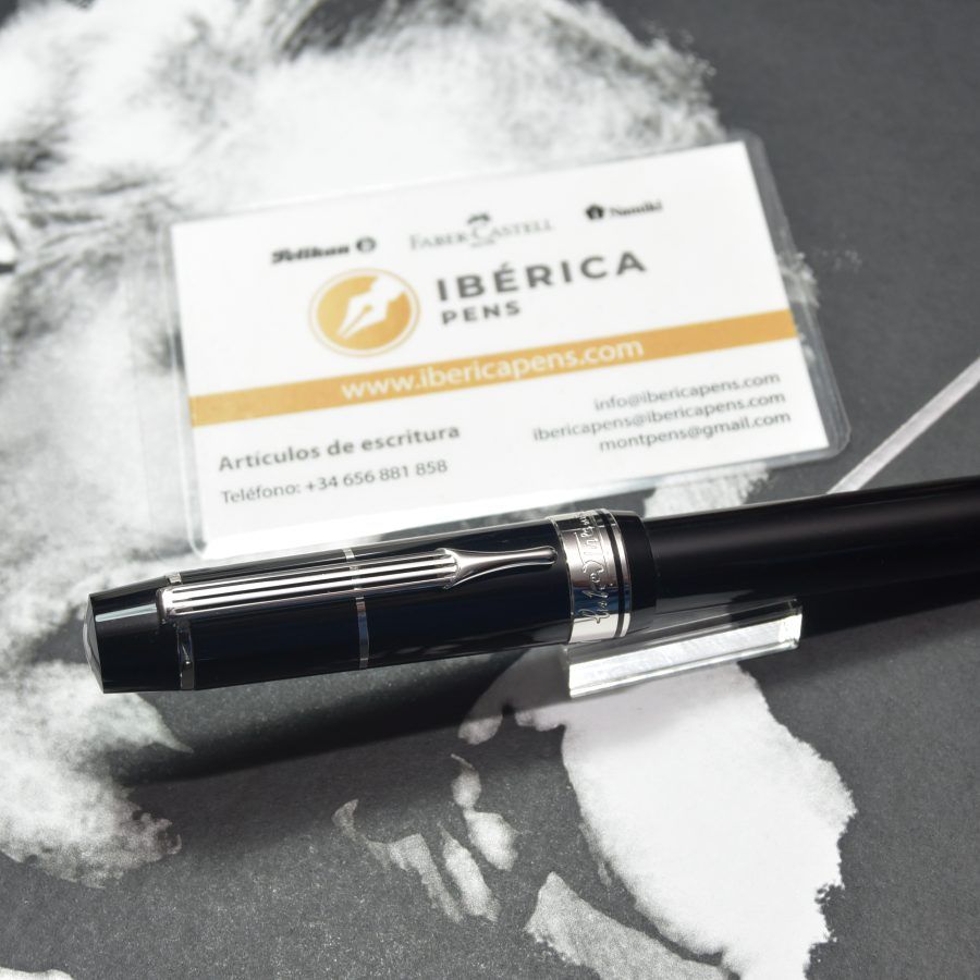 La pluma estilográfica está equipada con una punta mediana de 14k y es un relleno de pistón.