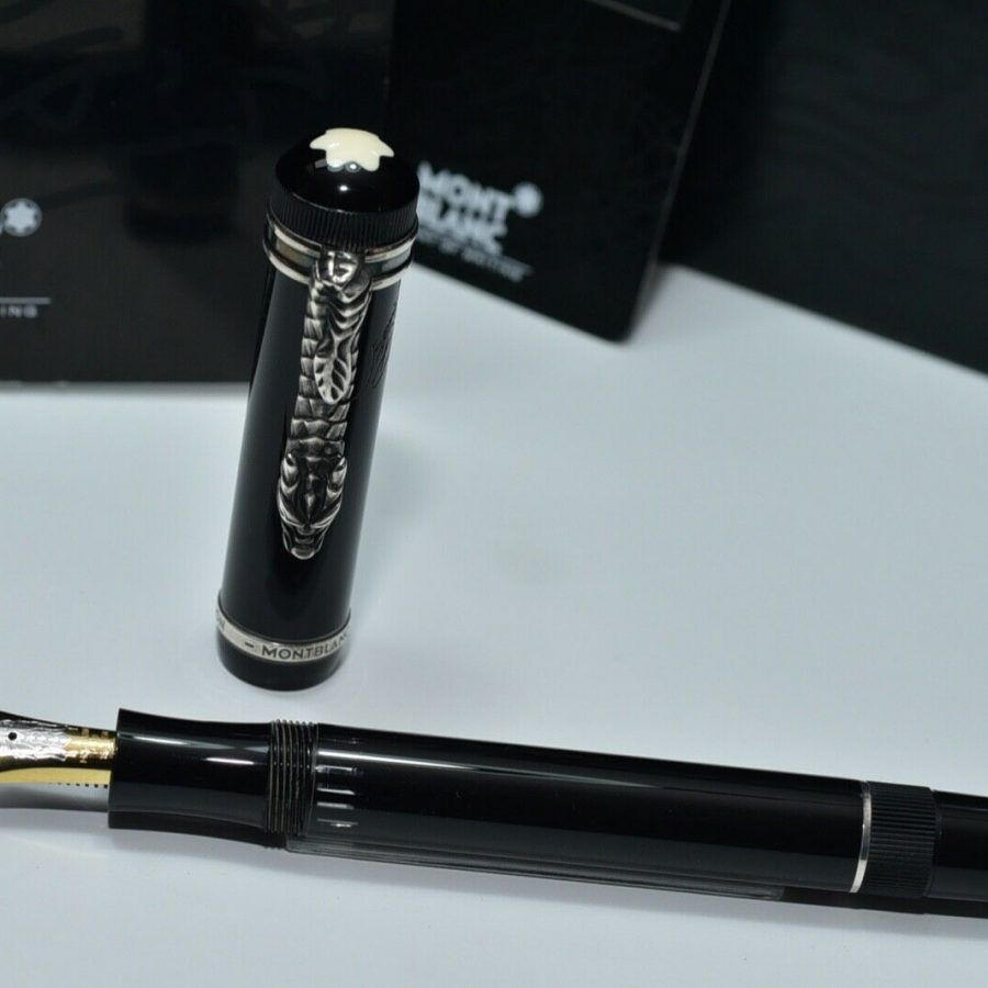 Pluma estilográfica , bolígrafo y portaminas de la serie  Montblanc Edición Limitada en homenaje al escritor estadounidense Mark Twain . Realizado en resina preciosa color azul profundo con grabación de curvas imitando el vaivén de agua del rio Mississippi.